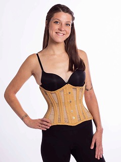 メッシュ素材のコルセットです。暑い季節の蒸れ防止はもちろん、目立ちにくいので、職場などで終日着用するのにも向いています フラット/スパイラルスチールボーン28本〜36本(サイズに応じて増える)で、通常のタイプより補強されています。 サイズ:フロント約26.7cm、背面約29.8cm、サイド約26cm 背面には約12.5cmのモデスティーパネル(当て布)、ガーター用タブ6個付き。 素材:メッシュ ■Orchard Coretは輸入コルセットでは珍しく16インチからサイズが揃っています。 ■CS-426タイプのコルセットは非常にきつい砂時計型です。 ■ウエストとアンダーバストの差:17.5cm /ウエストとヒップの差:30cm |