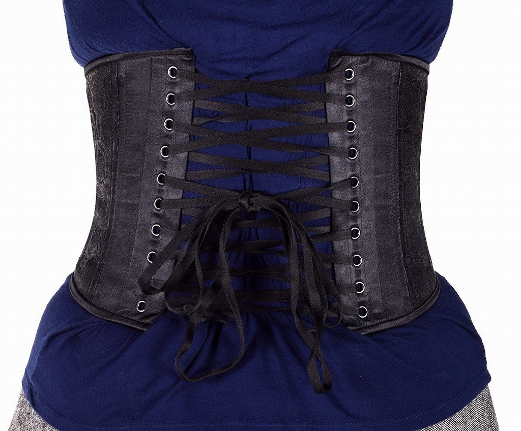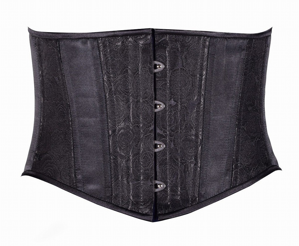 黒地に薔薇の花をあしらったBrocade(錦織)と艶やかなブラックサテンを組み合わせた日常的に着用できるショートタイプ。普通のきつさ(Gentleタイプ)です。小柄〜普通身長の方なら肋骨下部から覆ってくれます。大柄に方には向きません。 このコルセットはインナーとして着けると、自然なウエストラインを作ってくれます。本気で締めるとウエストサイズを15cm程細くします。 他のBlack Irisコルセットと同様、丈夫な3重構造で出来ています。またフロントの留め具がショートタイプでありながら4個ありますので(普通は3個)、強い締付けにも耐えることができます。 スパイラルボーン20本 サイズは前面中央部約20cm、サイド約16.5cm、背部約25cm ウエストとアンダーバストの差は約10cm 同ヒップ周りの差は約18cm |